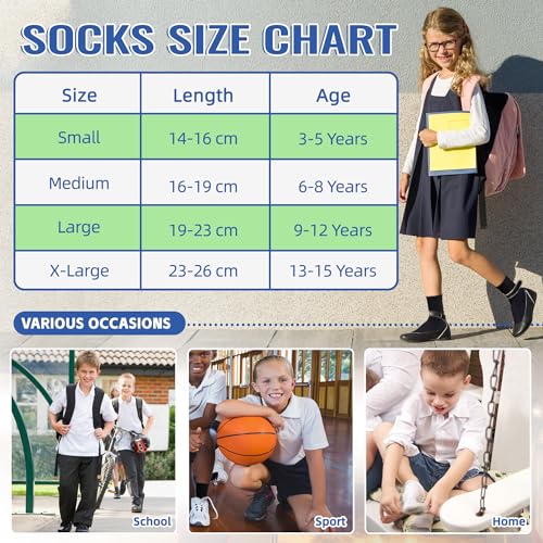 • Give Your Child The Perfect Fit - Available in a range of age-specific sizes (3-5 Years, 6-8 Years, 9-12 Years, 13-15 Years), these kids cotton socks offer a snug and supportive feel. Whether your child is in the early years of school or a teenager, you can find the ideal size that offers a snug and comfortable fit, ensuring maximum support for growing feet.