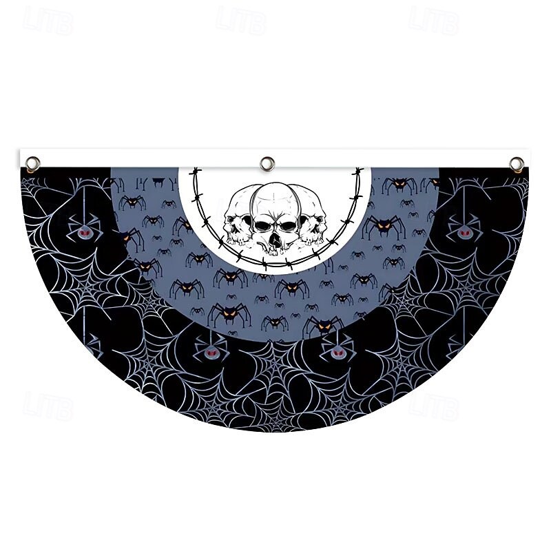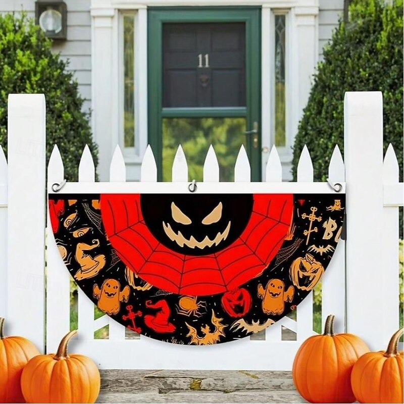HOT ! Halloween Decorations Flag Bunting Half Fan Flag Halloween Yard Hanging Bunting Flag Banner with Grommets for Porch Yard Outdoor Festival Patio Lawn Garden Party Decor