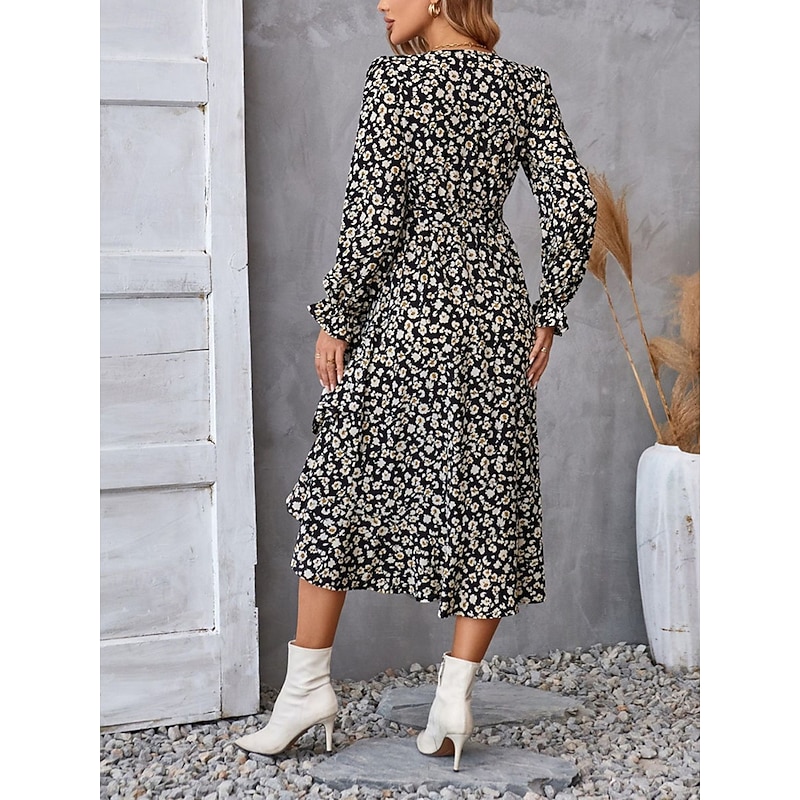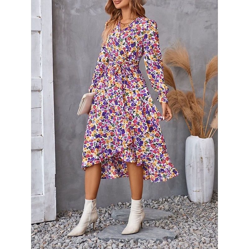 More information about Women's Floral V Neck Midi Dress Long Sleeve Summer Spring