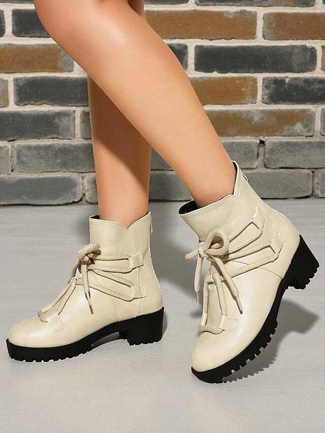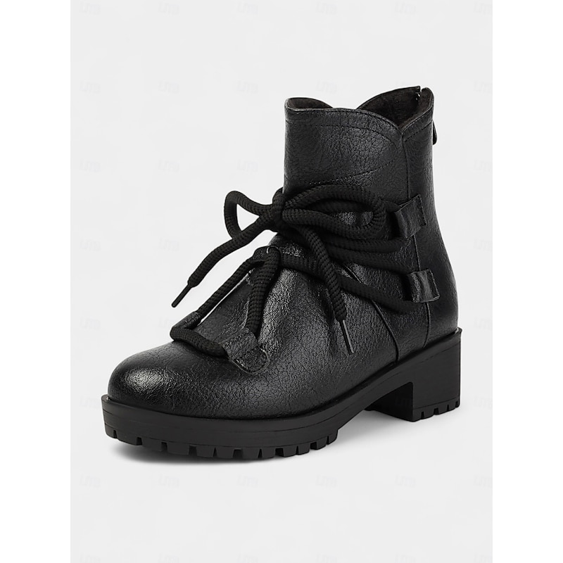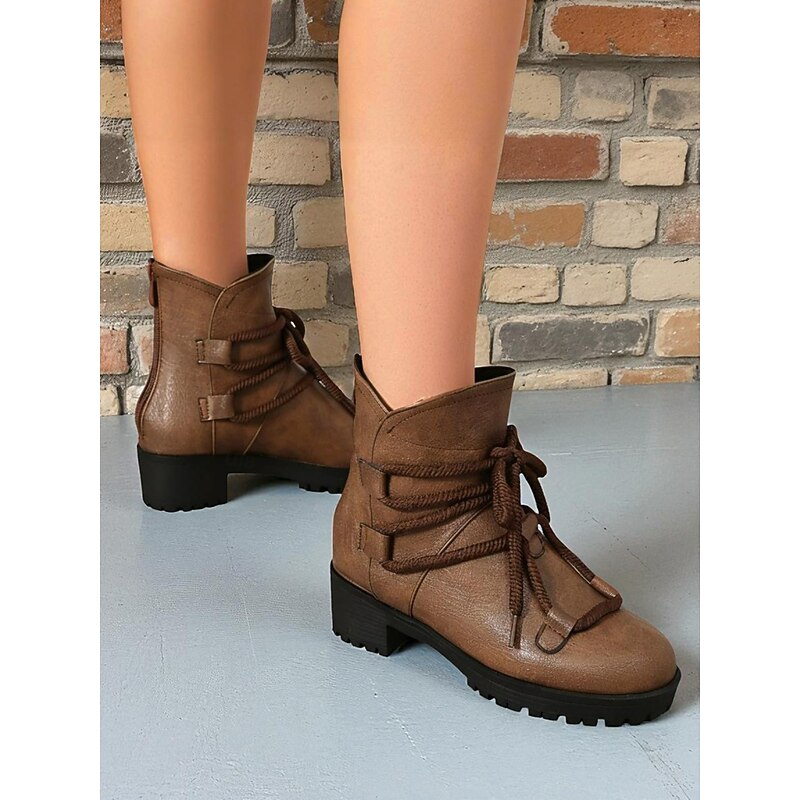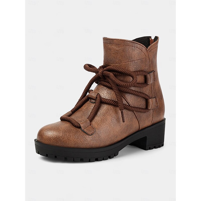 Women's Brown Faux Leather Combat Ankle Boots with Chunky Heel – Casual Outdoor & Streetwear Style 17