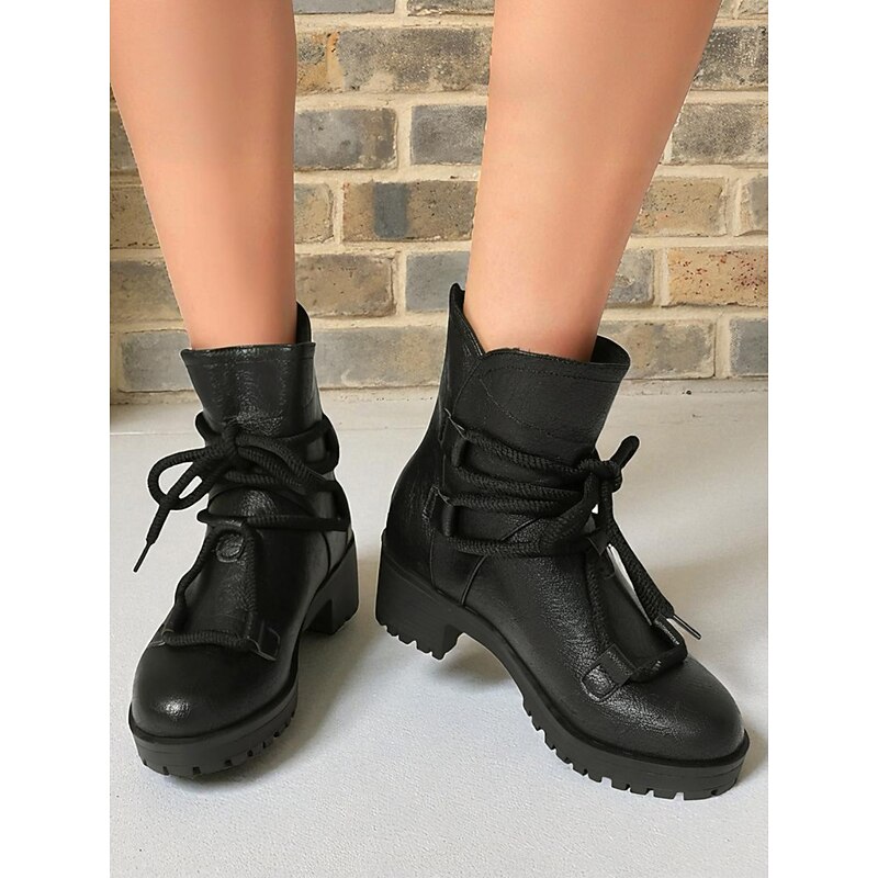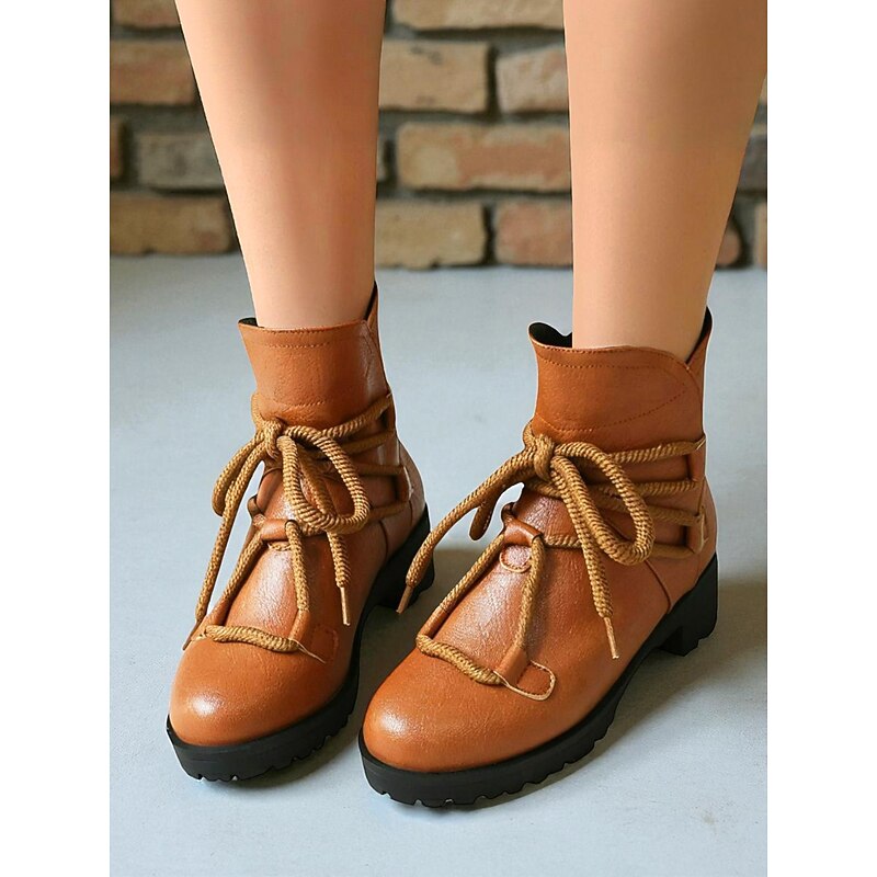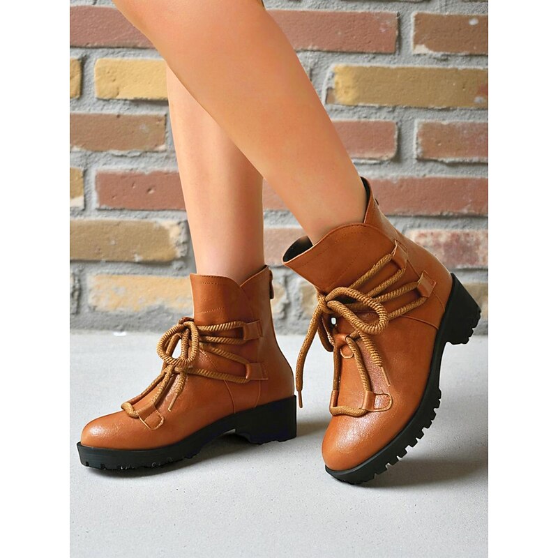Women's Brown Faux Leather Combat Ankle Boots with Chunky Heel – Casual Outdoor & Streetwear Style 16