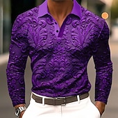 More information about Men's Floral Polo Long Sleeve Polo Shirts Lapel Business Casual Athleisure Daily Wear 3D Print Buttons Spring Fall Winter Blue Purple Orange