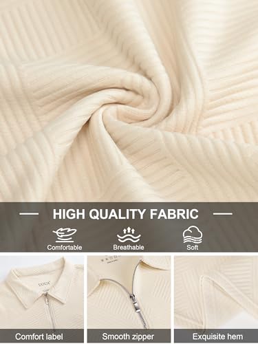 More information about UOUA Men's Zipper Polo Shirts Short Sleeve Sweatshirts Soild Color Tops Striped Texture Casual Golf T