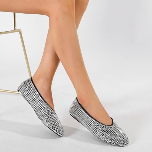STUPMARY Women Flats Shoes Round Toe Slip On Studded Crystal Casual Driving Comfort Ballet Dance Shoes 6