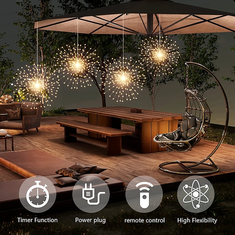 $83.99 - 8pcs Firework Lights Christmas Decorations Starburst Total 800LEDs Copper Wire Fairy Twinkle Lights Plug in String Lights Remote Control 8 Modes Waterproof Starburst Lights for Christmas Birthday Bedroom Corridor Patio Wedding 2025. Shop for cheap Plug String Lights online? Buy at lightinthebox.com on sale today!
