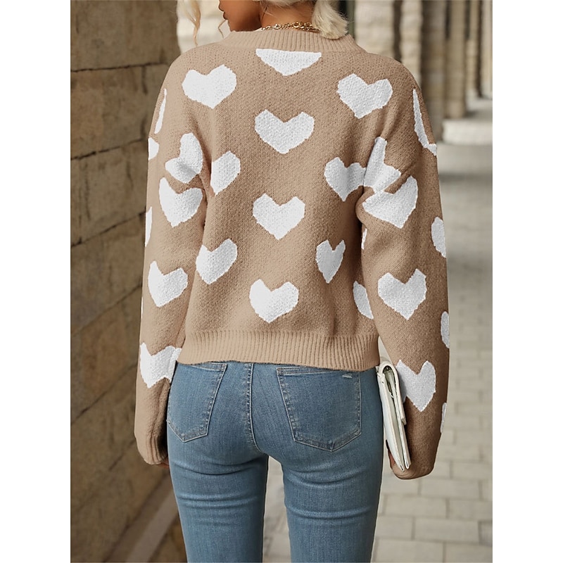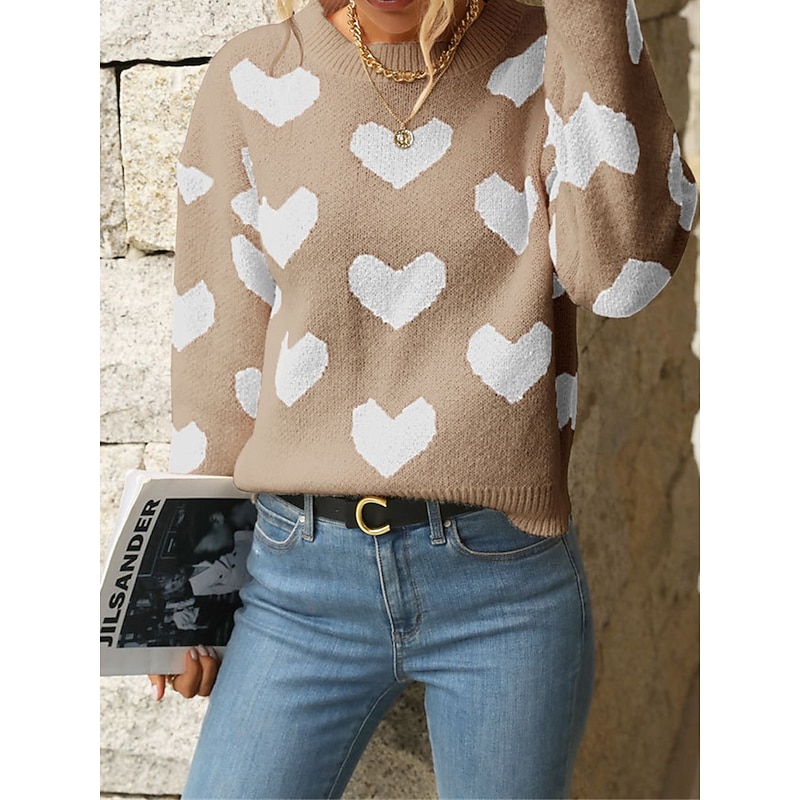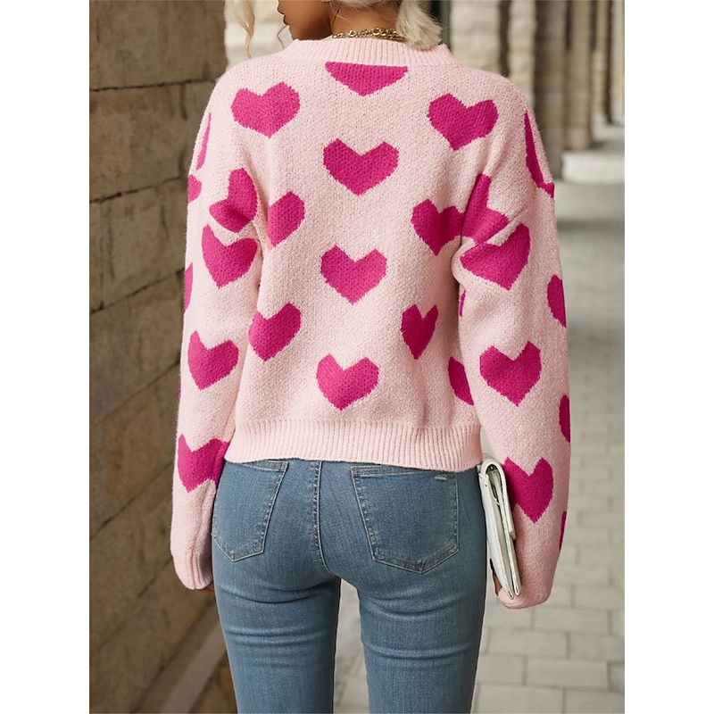More information about Women's Sweater Pullover Sweater Jumper Casual Soft Heart Ribbed Crew Neck Knitted Long Sleeve Regular Tops Knit Outdoor Daily Weekend Pink Fuchsia Fall Winter