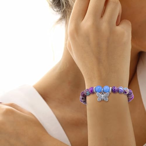 • [Material] -- Made of natural amethyst and butterfly charm, the beads are smooth and beautiful, comfortable and cool to wear, no harm to the skin, not easy to fade, and the elastic cord is durable.