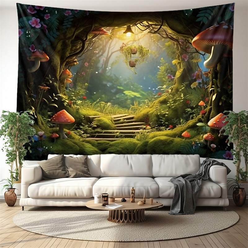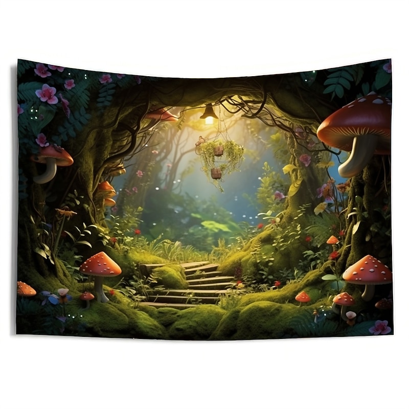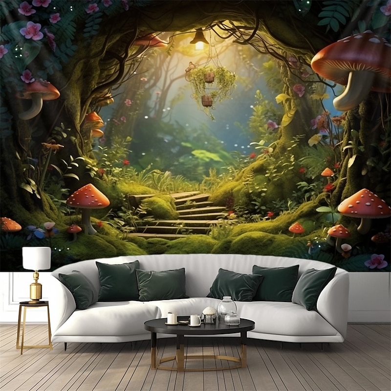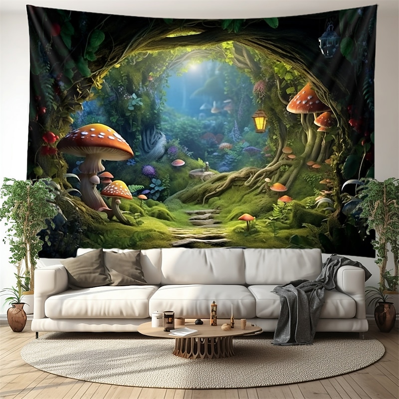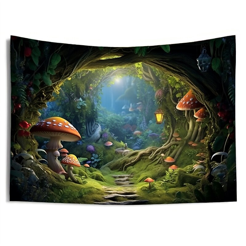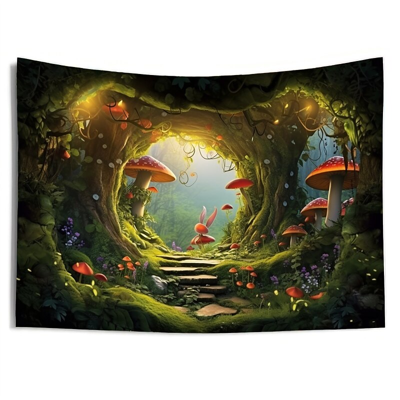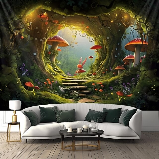 HOT ! Trippy Mushroom Cave Hanging Tapestry Wall Art Large Tapestry Mural Decor Photograph Backdrop Blanket Curtain Home Bedroom Living Room Decoration