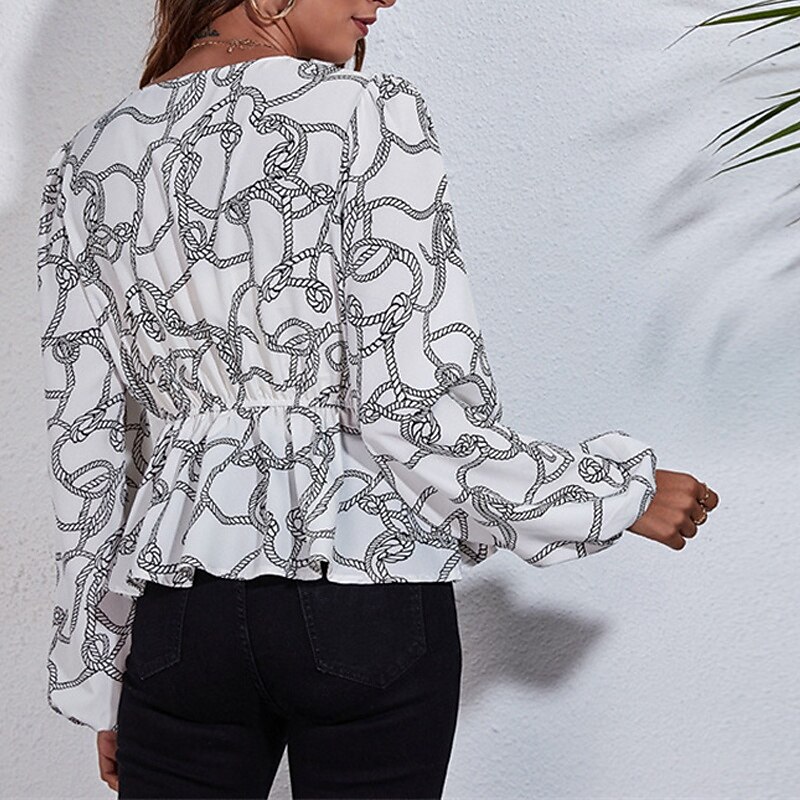 More information about Women's Summer Tops Chiffon Tops Graphic Daily Stylish Basic Long Sleeve Lantern Sleeve V Neck Regular Tops Work Daily Holiday Print White Spring Fall