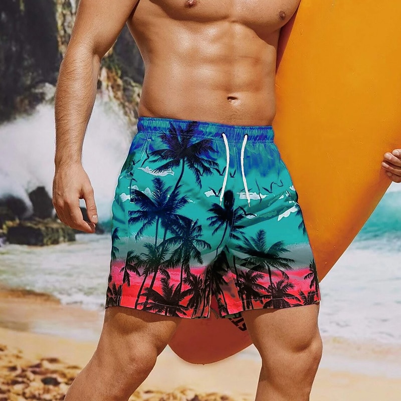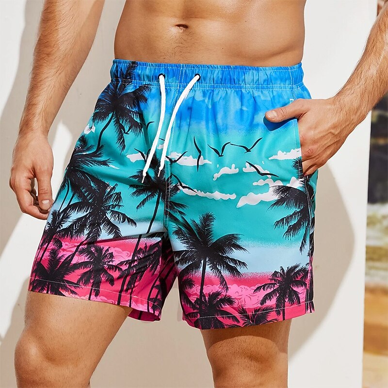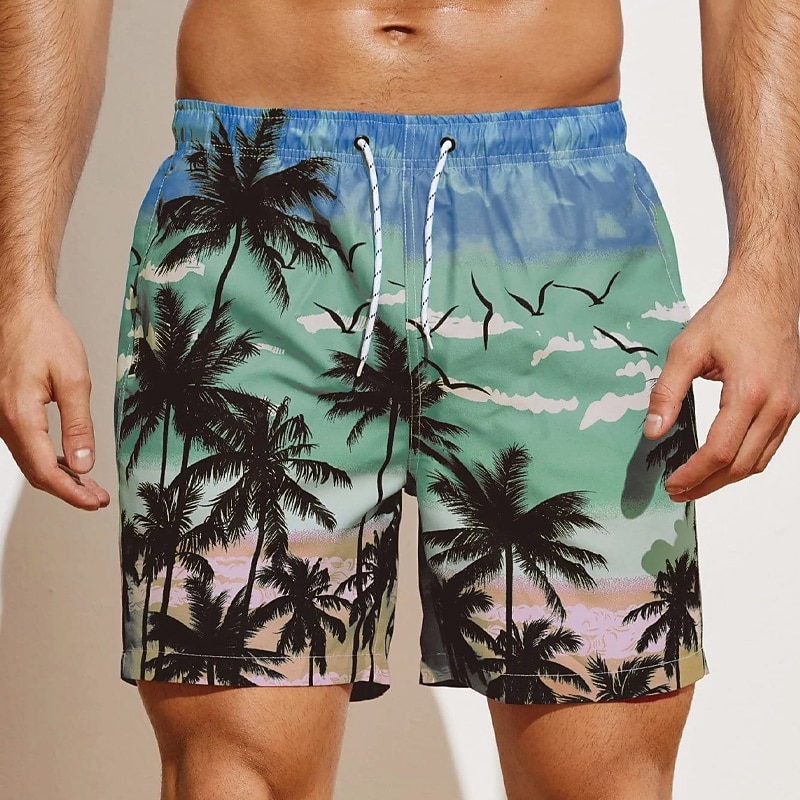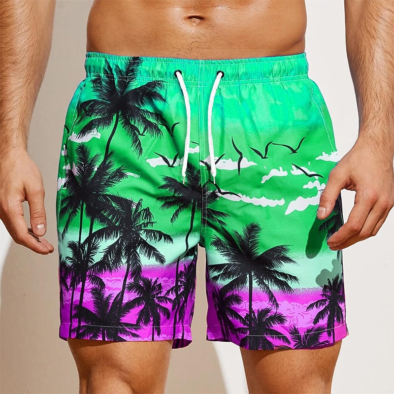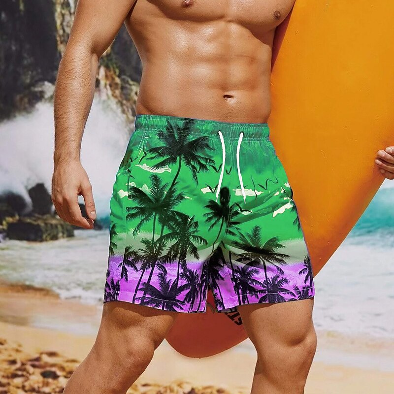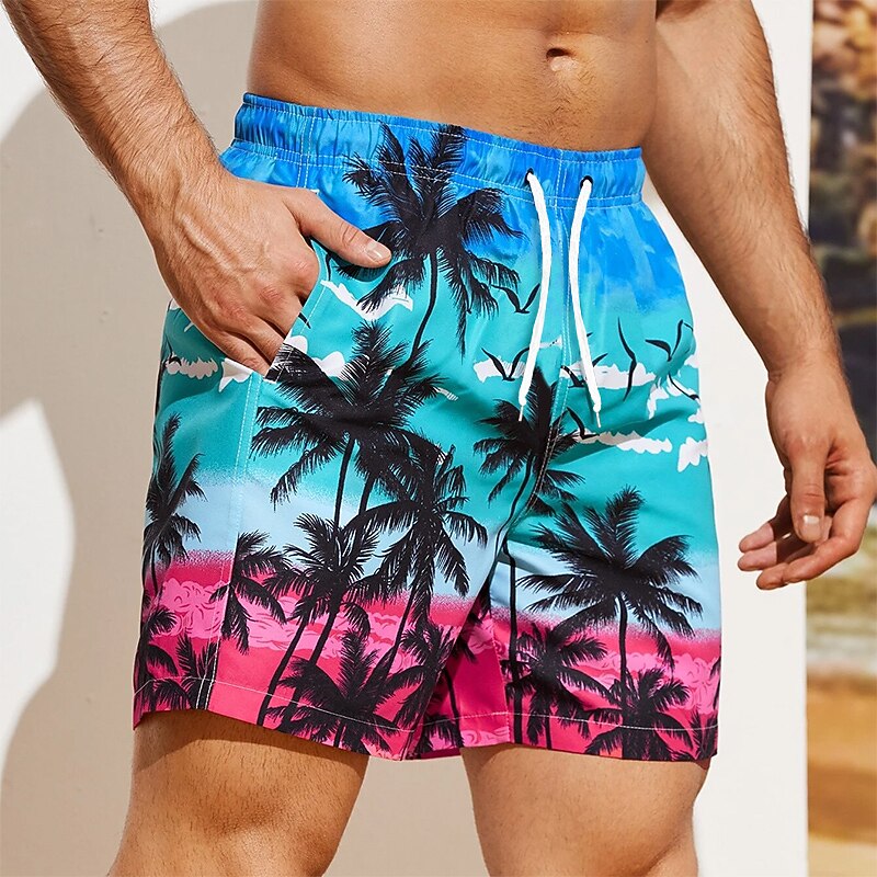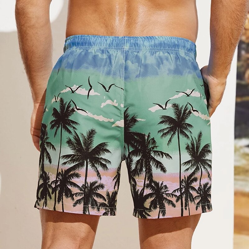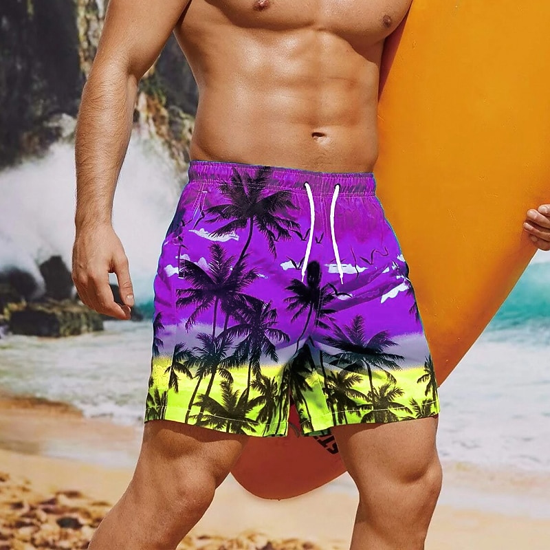 More information about Men's Graphic Coconut Tree Swim Shorts Board Shorts Swimming Trunks Mid Waist Streetwear Hawaiian Boho Casual Daily Holiday Drawstring with Mesh lining Elastic Waist Designer Clothing Apparel