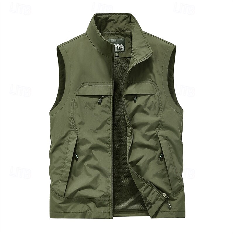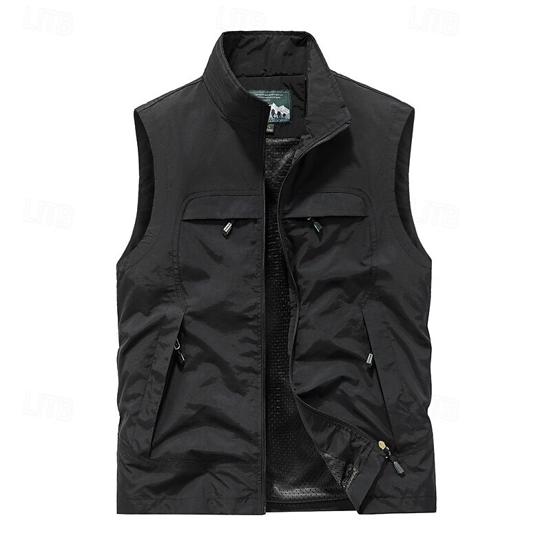 More information about Men's Outdoor Vest Vest Fishing Vest Outdoor Daily Fashion Casual Spring Fall Pocket Nylon Comfortable Plain Zipper Standing Collar Regular Fit Black Khaki Army Green Dark Blue Vest