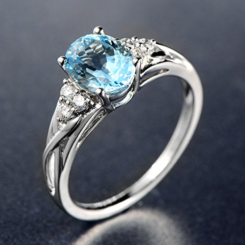 Simple Design Fashion Genuine Natural Sky Blue Gemstone Aquamarine for Women Promise Wedding Engagement 14K White Gold Band Ring Set 7