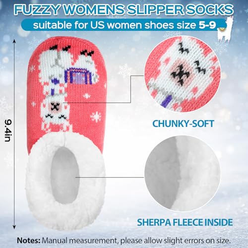 4 Pairs Winter Fuzzy Slipper for Women Non Slip Animal Slipper Socks with Grippers Cozy Sherpa for Indoor 6