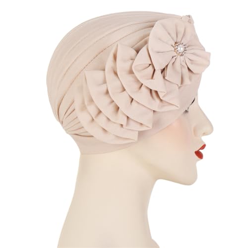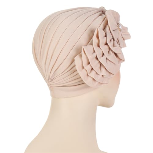 Flower Turban Hats for Women - Ruffle Bead Stretch Solid Caps Chemo Cancer Pre Tied Headscarf Headwear 4