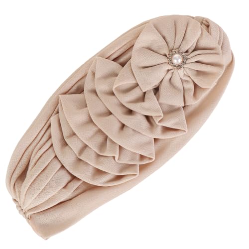 Flower Turban Hats for Women - Ruffle Bead Stretch Solid Caps Chemo Cancer Pre Tied Headscarf Headwear 5