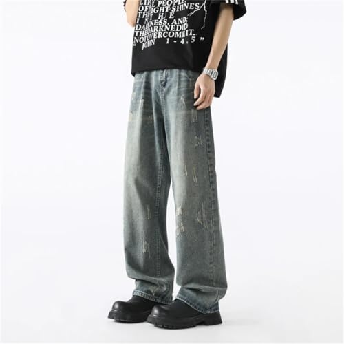 HOT ! Men Summer Jeans Vintage Baggy Straight Pants Hiphop Ripped Jeans Blue Denim Trousers