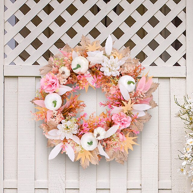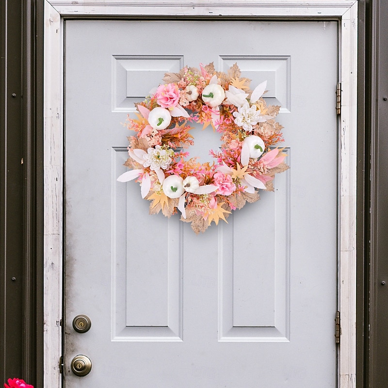 MXN $515 - Fall Pink Wreath for Front Door Thanksgiving Autumn Harvest Indoor Outdoor Decoration, Pink and White Pumpkin Artificial Grapevine Wreath Window Hanging Decor 2025. Shop for cheap Thanksgiving & Fall Decoration online? Buy at lightinthebox.com on sale today!