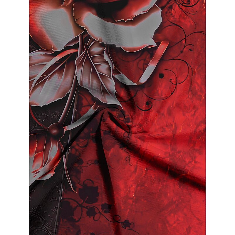 Women's Plus Size Lace Shirt Going Out Tops Eyelet top Elegant Vintage Daily Floral Butterfly Lace Print Cold Shoulder Long Sleeve Regular Tops V Neck Off Shoulder Party Going out Club Red 11
