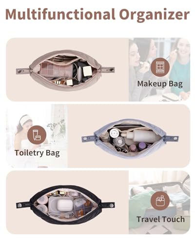 • Wide-Open Design: The wide-opening design of this makeup pouch ensures easy access to all your beauty essentials. No more rummaging through small cosmetic pouches—this women's toiletry bag lets you effortlessly locate items like lipstick or eyeshadow in no time. (Patent pending)