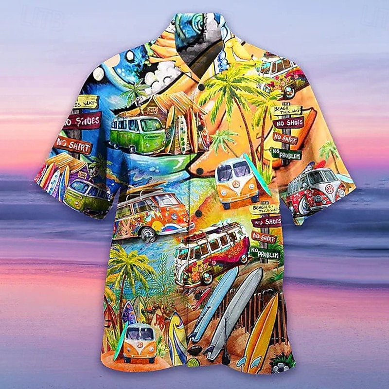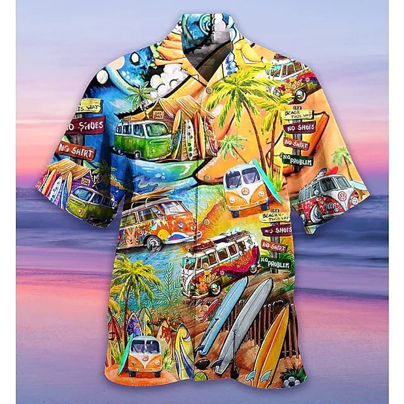 Highlights [Fabric] : This men's summer Hawaiian shirt is crafted from lightweight and breathable polyester fabric, ensuring maximum comfort in warmer weather. The soft material allows for easy movement, making it ideal for all-day wear. [Fit] : The shirt features a regular fit that offers a comfortable and relaxed silhouette, perfect for casual outings or social gatherings. The button-down front and turndown collar add to its classic and polished look. [Design Highlights] : Vibrant flamingo and tropical light prints are set against an array of striking background colors such as black, yellow, and light green, bringing a lively flair to the classic Hawaiian shirt. The playful print includes details like palm trees and pineapples, making it an eye-catching piece for summer. [Occasions] : Ideal for holiday celebrations, casual outings, beach trips, and Hawaiian-themed parties. Whether you're going out for a laid-back day at the beach or a festive evening gathering, this shirt adds a splash of fun and color to your ensemble. [Size Range] : Available in a variety of sizes from S to 3XL, this shirt caters to different preferences, ensuring a great fit for a wide range of body types.
