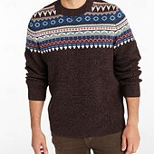 More information about Men's Fair isle Sweater Pullover Sweater Jumper Knitwear Crewneck Casual Vacation Daily 3D Print Keep Warm Long Sleeve Spring Fall Winter Brown