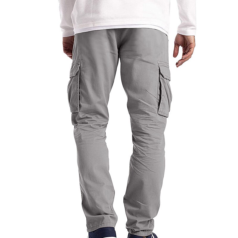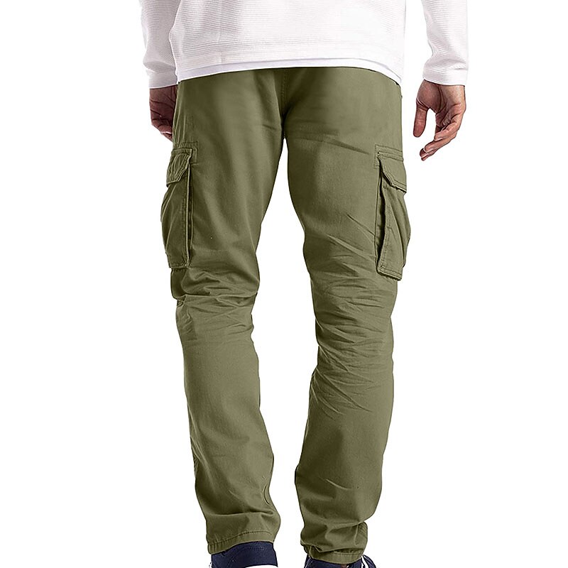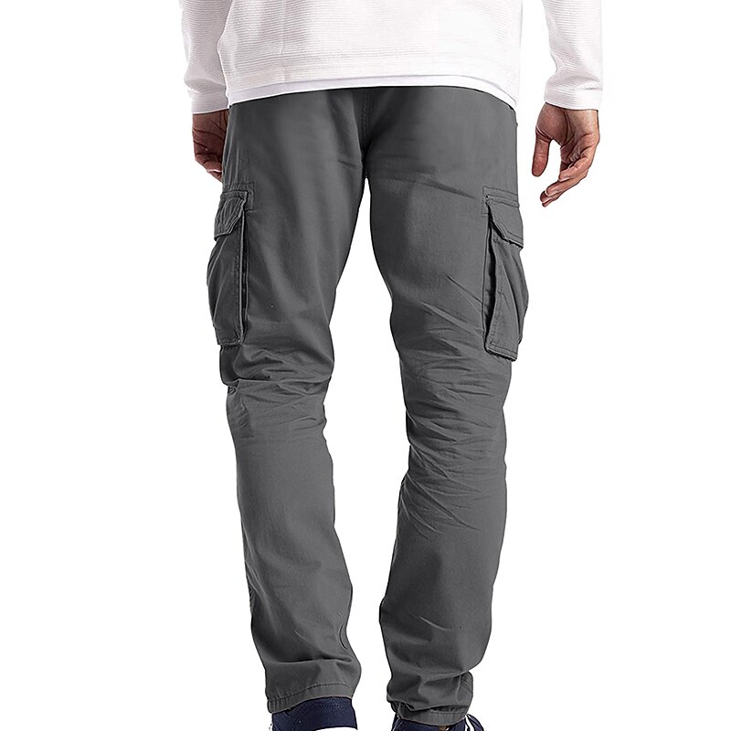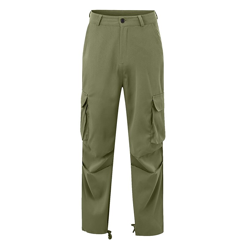 : These cargo trousers come with functional flap pockets that provide ample storage space, combining practicality with a stylish edge. The plain pattern and timeless design make them versatile for various occasions, while the sturdy construction enhances durability.