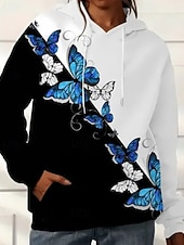 More information about Women's Pullover Hoodie Sweatshirt Floral Butterfly Streetwear Casual Long Sleeve Hooded Regular Tops Holiday Going out Pocket Print Black White Blue Light Blue Fall Winter
