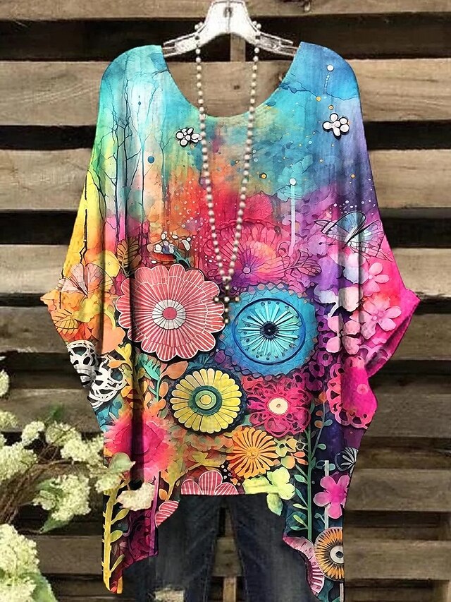 More information about Women's Blouse Graphic Geometric Elegant Vintage Daily Short Sleeve Batwing Sleeve Crew Neck Regular Tops Daily Holiday Vacation Wear Yellow Pink Purple Orange Summer Spring