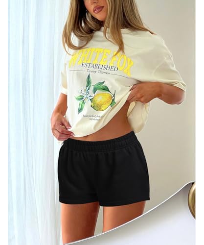 HOT ! Womens Sweat Shorts Casual Comfy Summer Elastic High Waist Cotton Lounge Shorts with Pockets