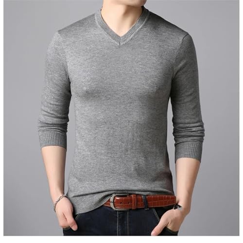 Men's V-Neck Wool Blend Sweater Fall Slim Soft Knit Pullover Lightweight Breathable Business Sweater 7