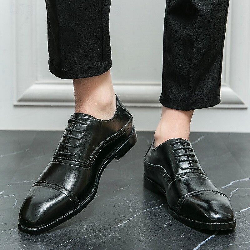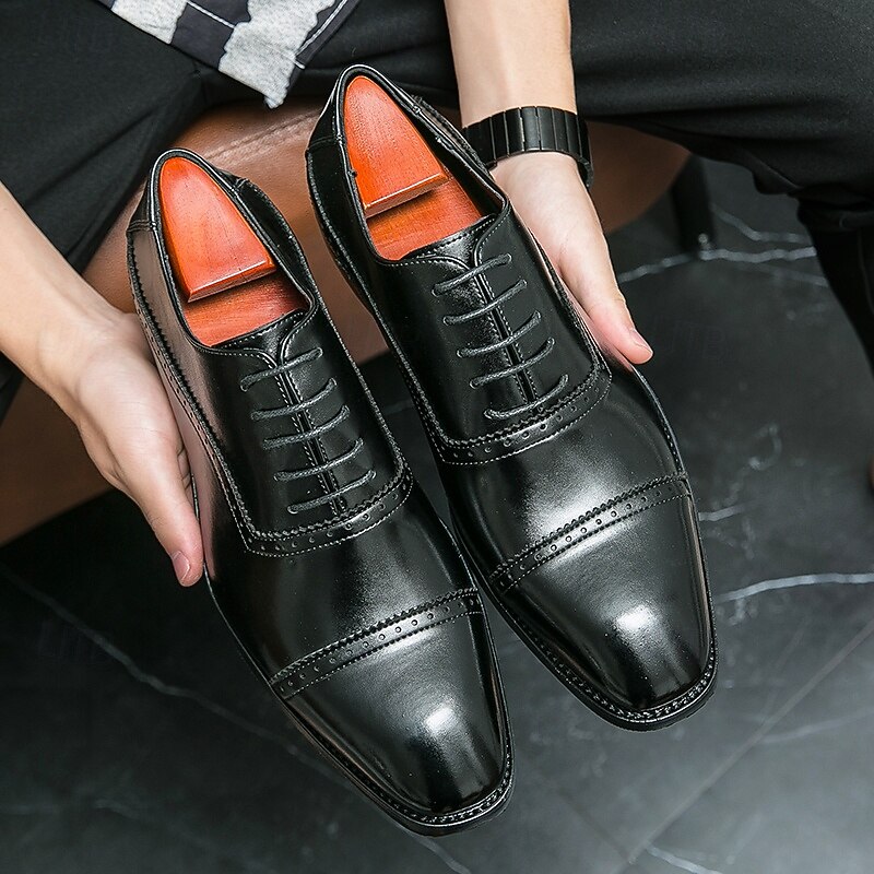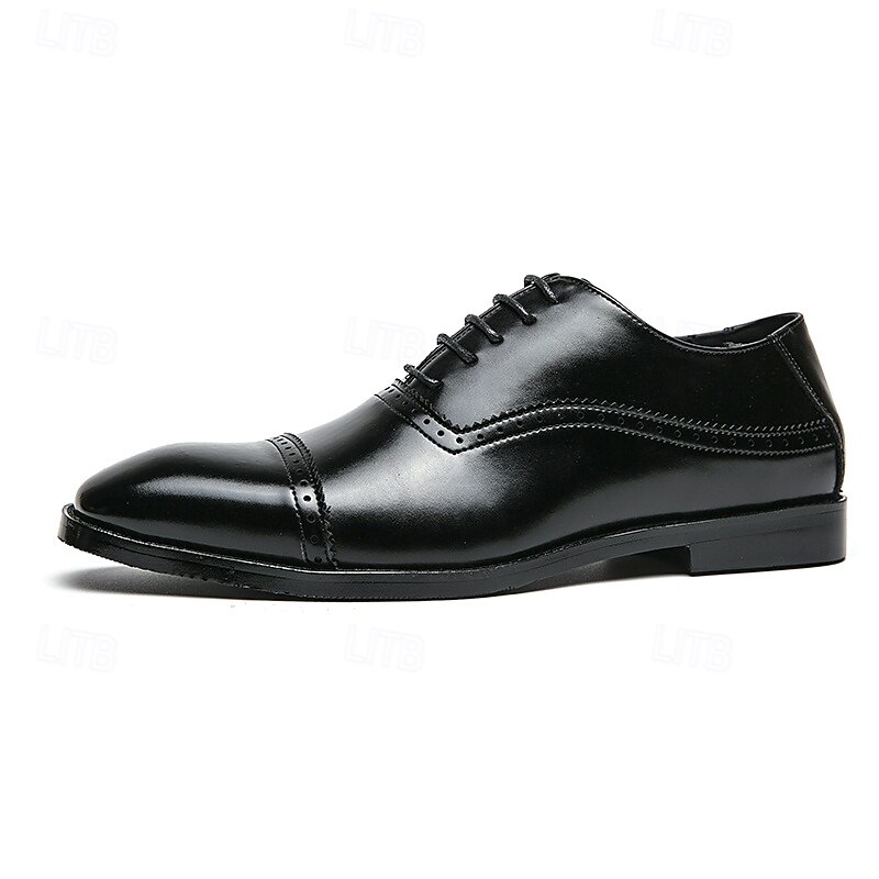 HOT ! Men's Brown Faux Leather Oxford Shoes – Classic Brogue Design with Lace-Up Closure for Formal Business and Wedding Occasions
