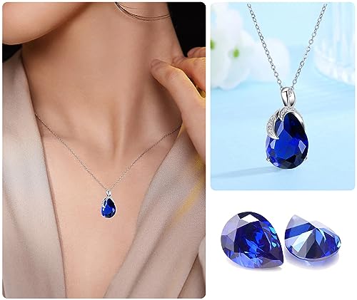 VONSSY Classic Oval Pendant Gemstone Necklace | Crystal Ruby Waterdrop Birthstone Emerald Necklace | 18K Platinum Gold Plated Chain | Jewelry Gift for Mother Wife Girlfriend 6