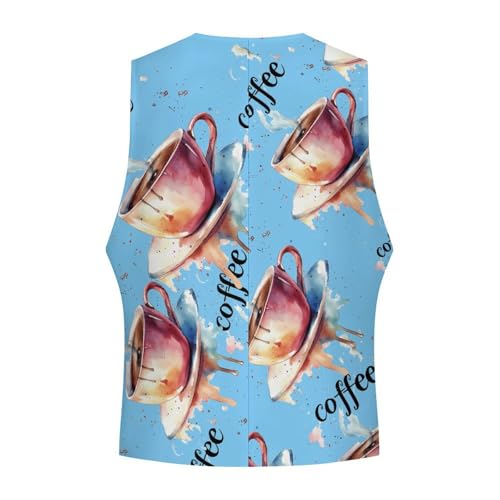 Coffee Cup Men's Suit Vests Business Formal Dress Vest V-Neck Waistcoat for Wedding Casual 1