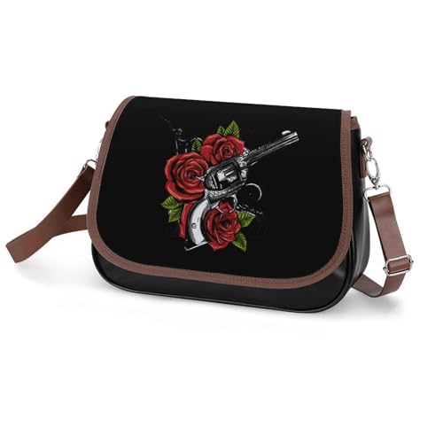 HOT ! Guns And Rose Crossbody Bag Anti-Theft Side Shoulder Bags Adjustable Leather Messenger Bag Unisex
