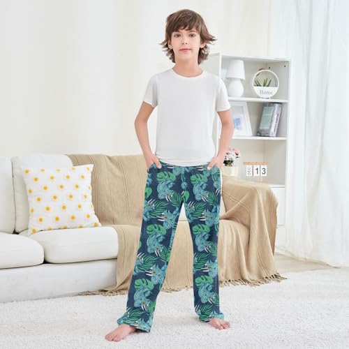 Cool Dinosaur Palm Leaf Boys Long Pants Soft Trousers Elastic Waist Kids Lounge Bottoms with Pockets S-XL 3