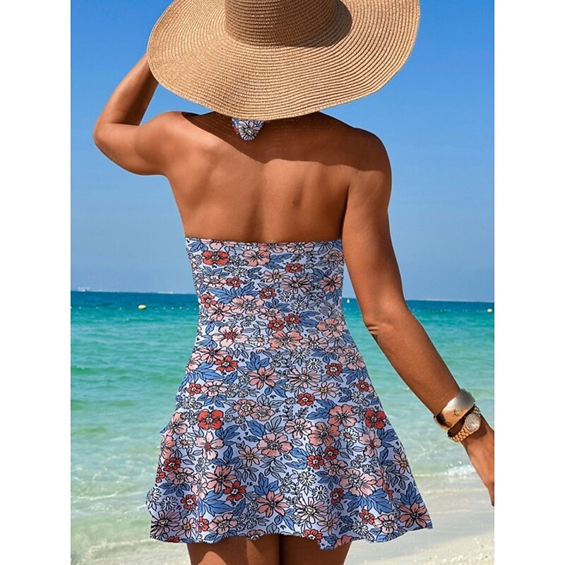More information about Women's Swimsuits One Piece Monokini Swim Dress Swimsuit Backless Tummy Control High Waist Slim Vacation Beach Wear Floral Halter Neck Sleeveless Bathing Suits