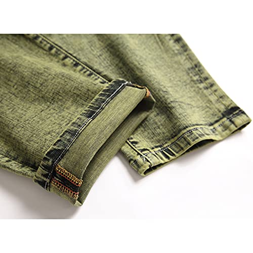 Slim Fit Stretch Skinny Jeans For Men Green Distressed Destroyed Ripped Straight Denim Jean Washed Pant 6