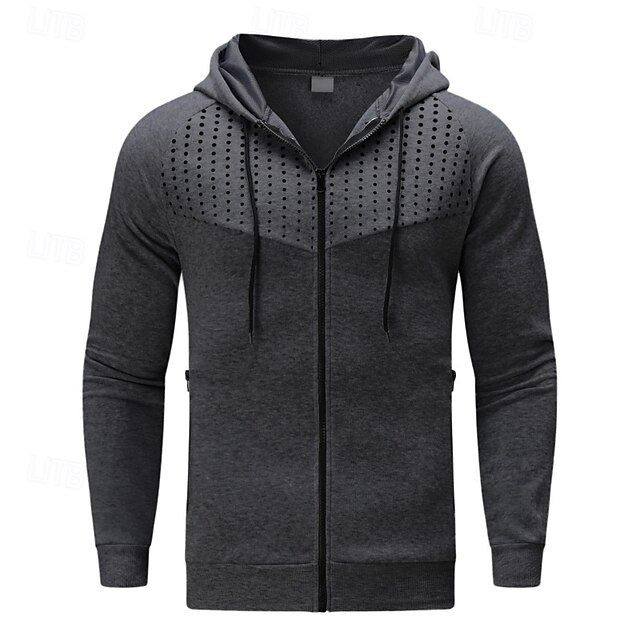 More information about Men's Hoodie Full Zip Hoodie Black Red Blue Gray Hooded Plain Patchwork Sports & Outdoor Casual Daily Streetwear Cool Sportswear Spring & Fall Clothing Apparel Hoodies Sweatshirts