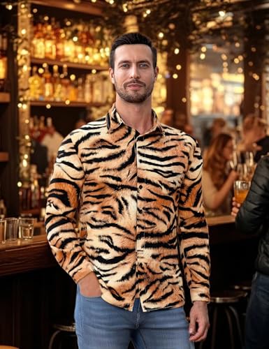 HOT ! Men's Animal Print Novelty Button Down Long Sleeve Shirt, S-4XL