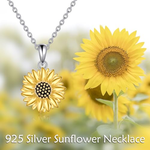 TIGER RIDER Sunflower Necklace for Women Sterling Silver Cute Animal Axolotl Dragonfly Moth Owl Black Cat Bee Pendant Necklaces Animals Jewelry Birthday Gifts for Women Wife 1