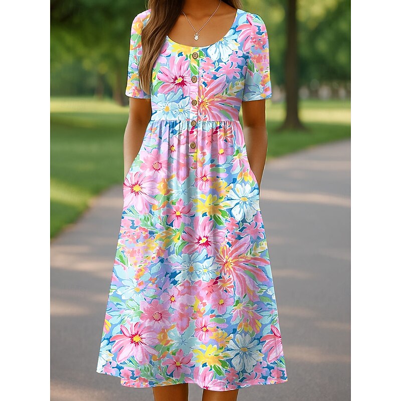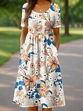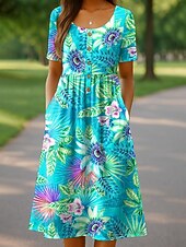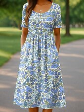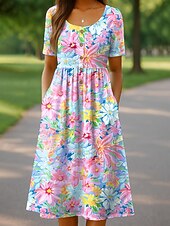 More information about Women's Midi Dress Casual Dress Sundress A Line Dress Summer Dress Vacation Casual Beach Holiday Regular Fit Floral Graphic Short Sleeve Crew Neck Pink Blue Green Beige Summer Spring