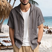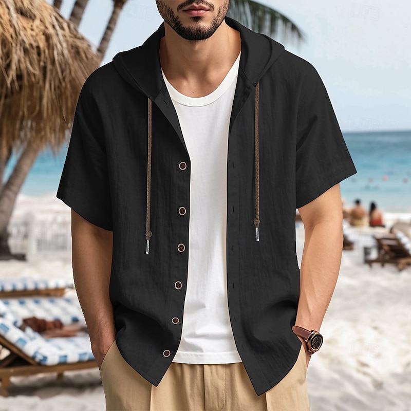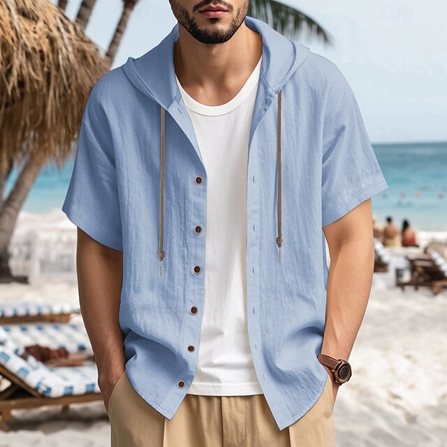 More information about Men's Shirt Linen Shirt Summer Shirt Beach Shirt Solid Color Vacation Casual Black White Blue Khaki Short Sleeve Hooded Summer Spring Clothing Apparel