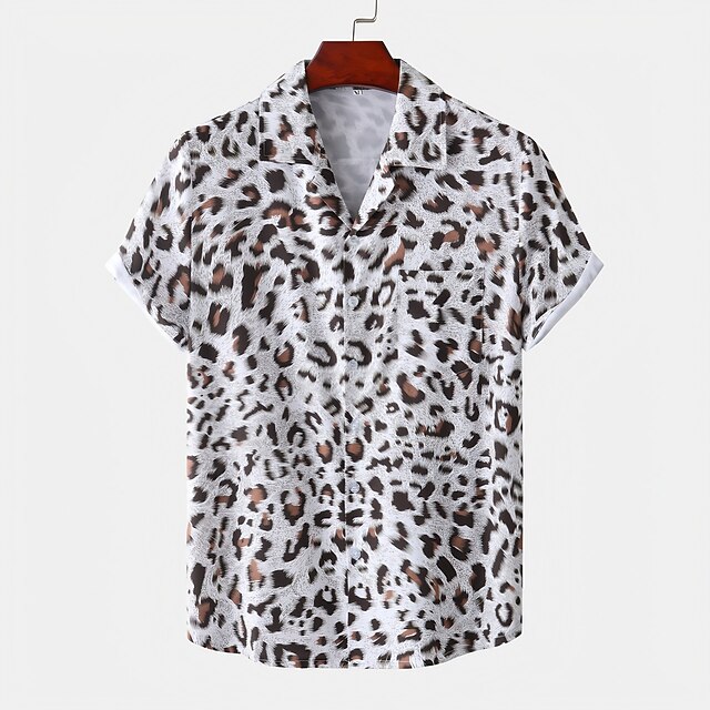 Men's Leopard Shirt Button Up Shirt Short Sleeve Tropical Hawaiian Designer Casual Daily Holiday Turndown Black / Gray White Pink Navy Blue Blue 31