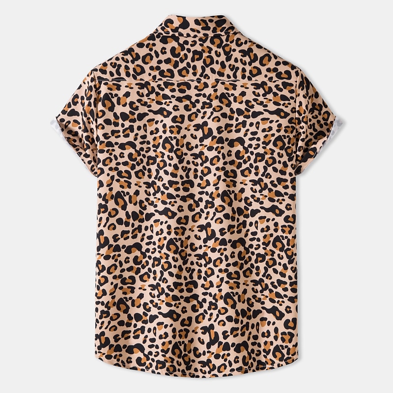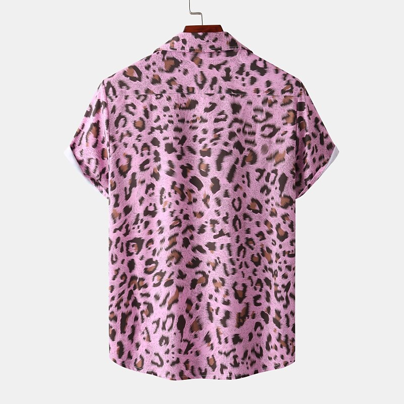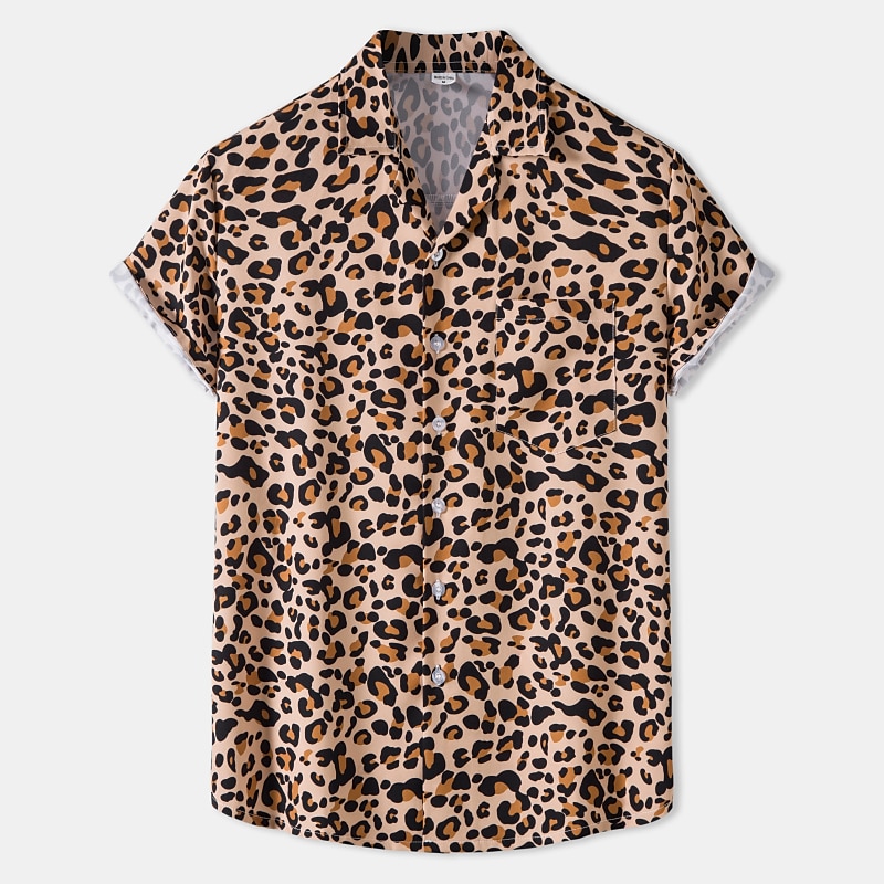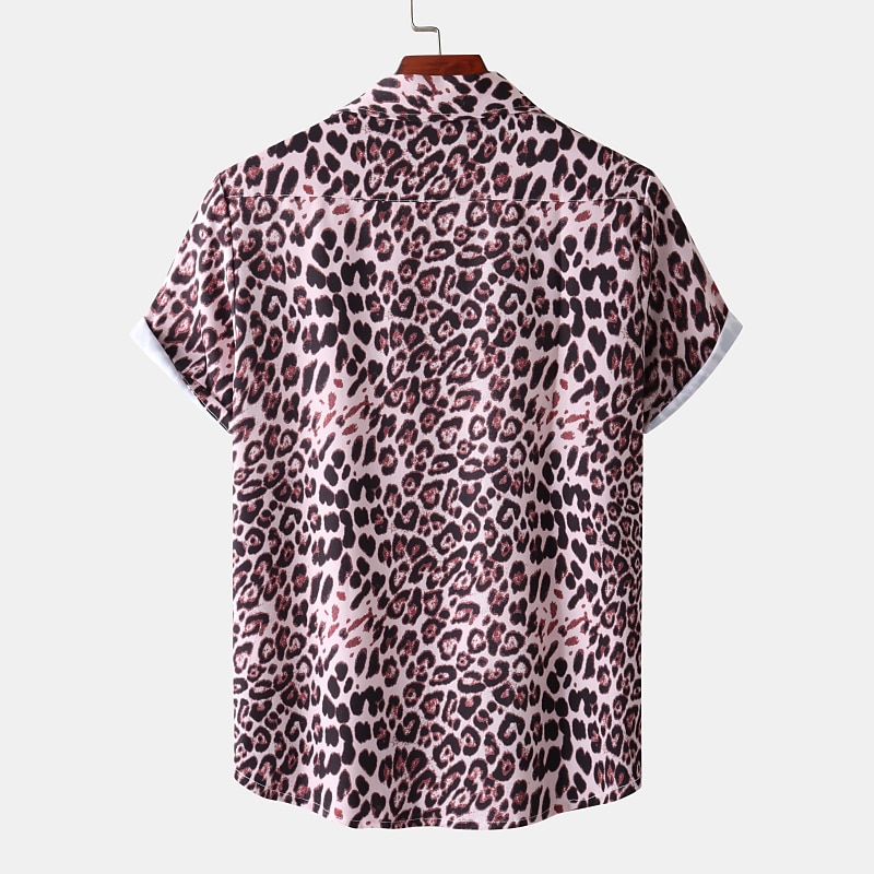 Men's Leopard Shirt Button Up Shirt Short Sleeve Tropical Hawaiian Designer Casual Daily Holiday Turndown Black / Gray White Pink Navy Blue Blue 6