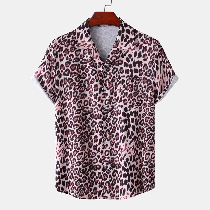 Men's Leopard Shirt Button Up Shirt Short Sleeve Tropical Hawaiian Designer Casual Daily Holiday Turndown Black / Gray White Pink Navy Blue Blue 28