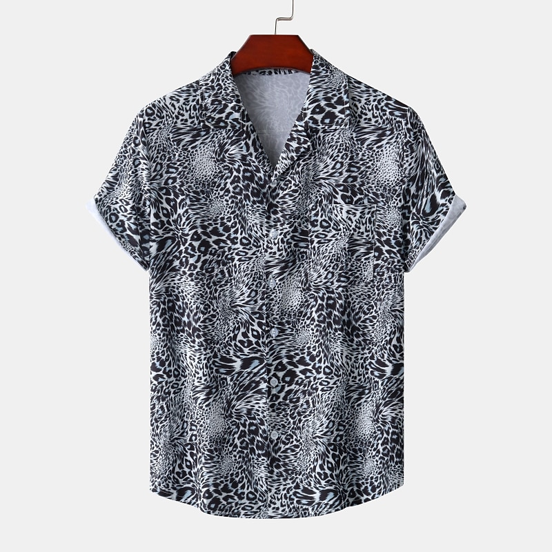 More information about Men's Leopard Shirt Button Up Shirt Short Sleeve Tropical Hawaiian Designer Casual Daily Holiday Turndown Black / Gray White Pink Navy Blue Blue
