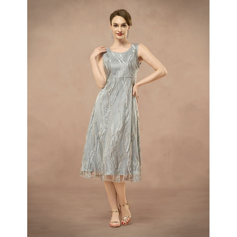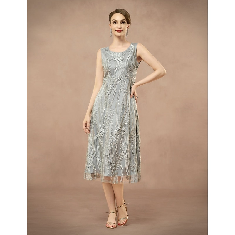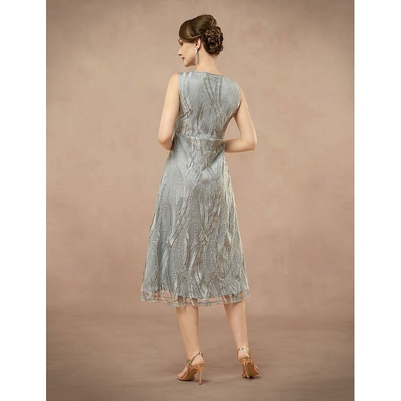 More information about A-Line Mother of the Bride Dress Two Pieces Elegant Jewel Neck Tea Length Lace 3/4 Length Sleeve with Embroidered Lace Applique 2025