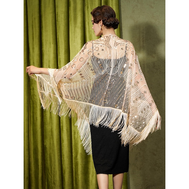 Retro Vintage Roaring 20s 1920s Scarf Wrap Shawls The Great Gatsby Flapper Girl Sequins Tassel Fringe Fancy Dress Women's Carnival Wedding Evening Party Masquerade Adults' Shawl 15