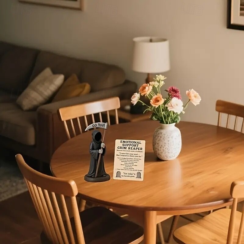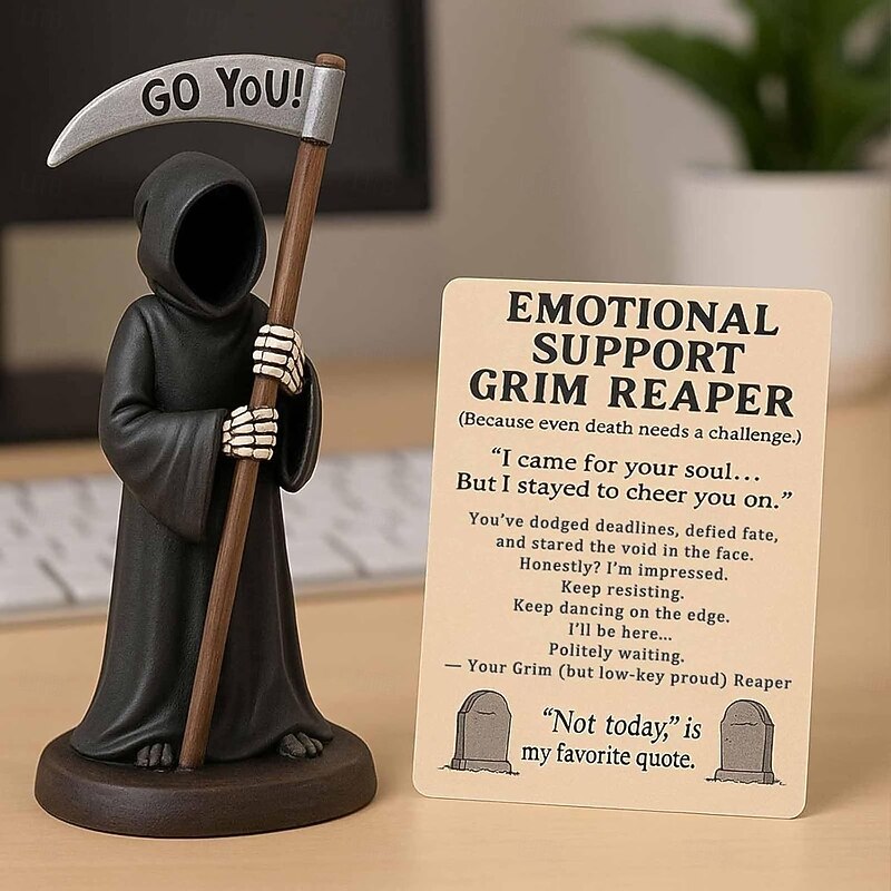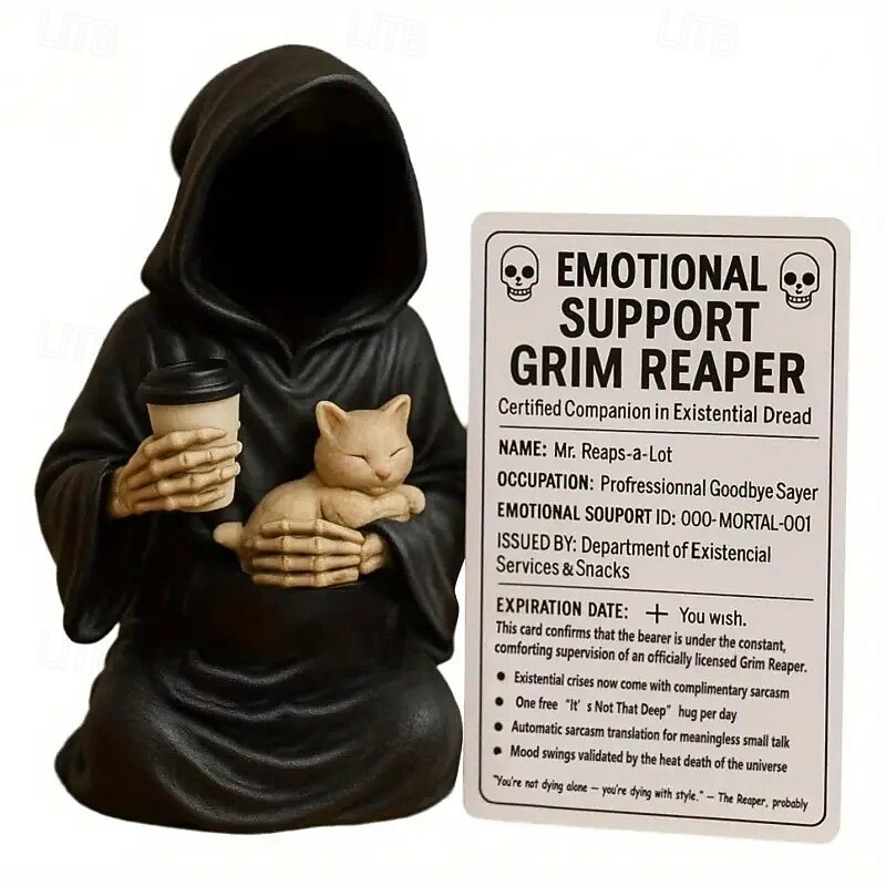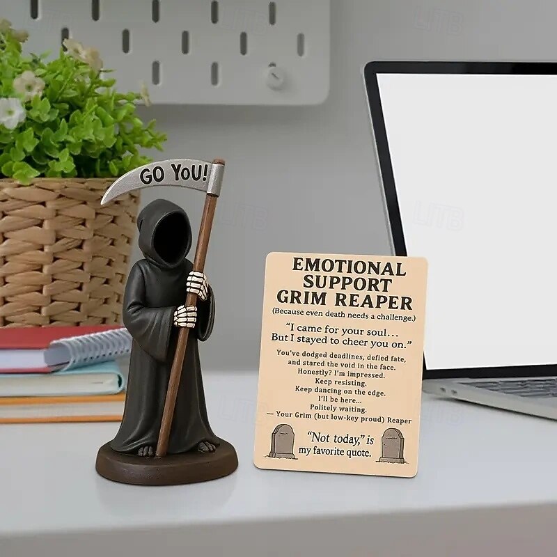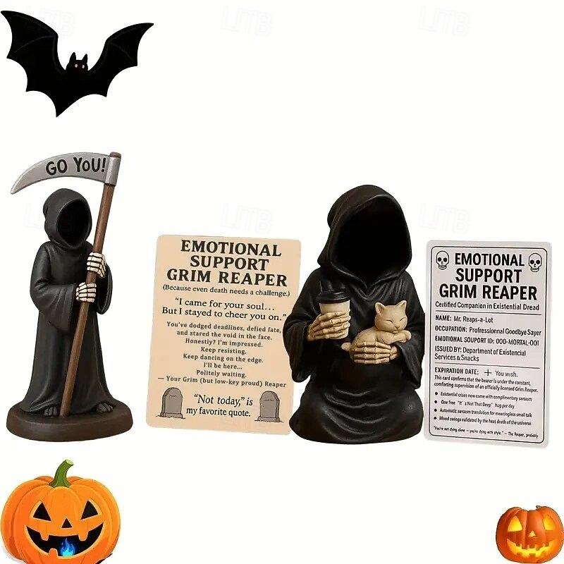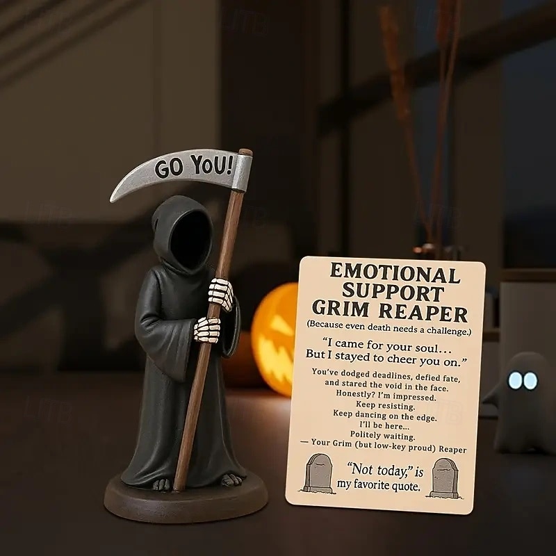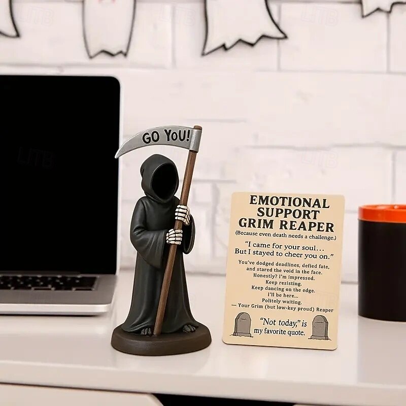 $13.99 - Emotional Support Grim Reaper Figurine Halloween Grim Reaper Statue with Emotional Support Card Gothic Gifts for Adults & Teens - Existential Dread Companion 2025. Shop for cheap Halloween Hanging & Tabletop Decorations online? Buy at lightinthebox.com on sale today!
