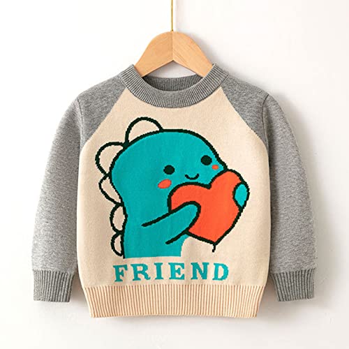 Toddler Boys Girls Cartoon Love Little Dinosaur Print Sweater Long Sleeve Warm Knitted Pullover Knitwear Tops Sweater Boys Sweaters 5t (Khaki, 6-7 Years) 5